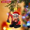 3D-effekt lille dreng med bil, gravemaskine, rendegraver, traktor, personlig juleophæng i akryl