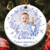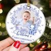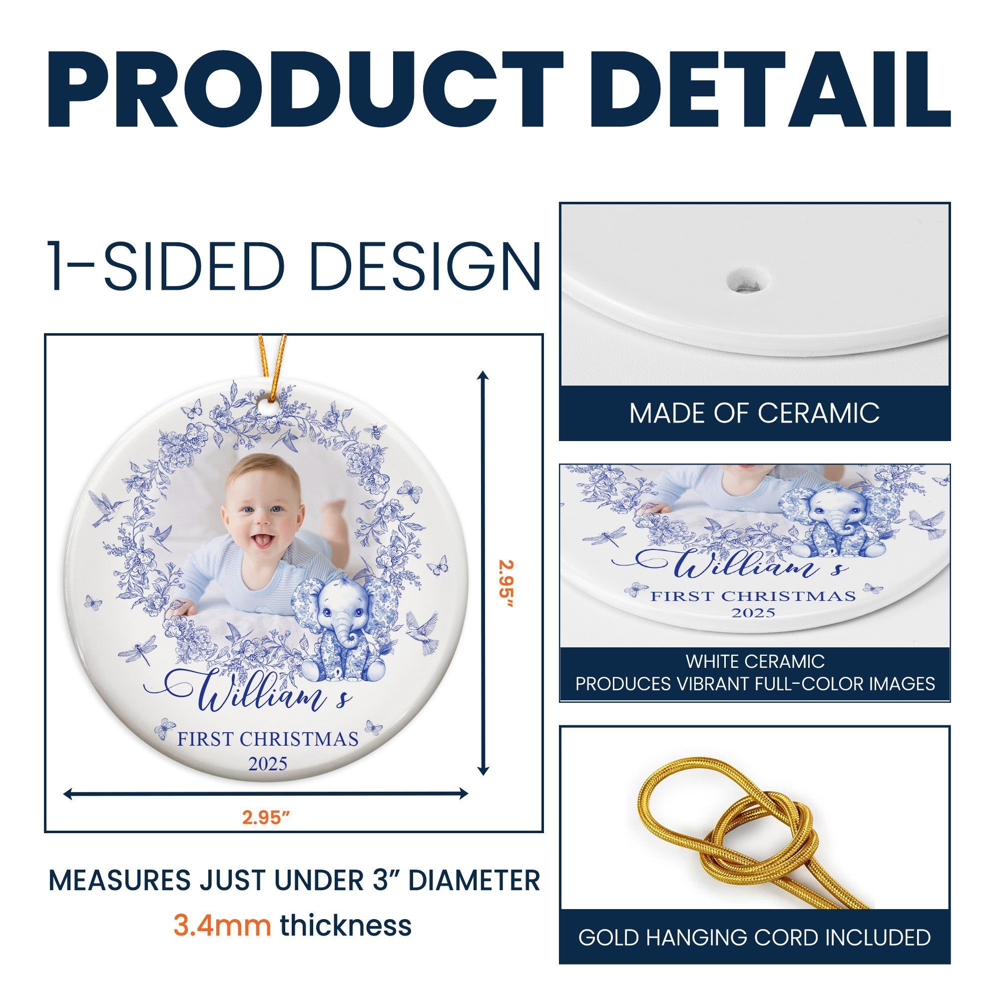 Babys første jul til babypige, babydreng Toile De Jouy - Personlig keramisk fotoornament
