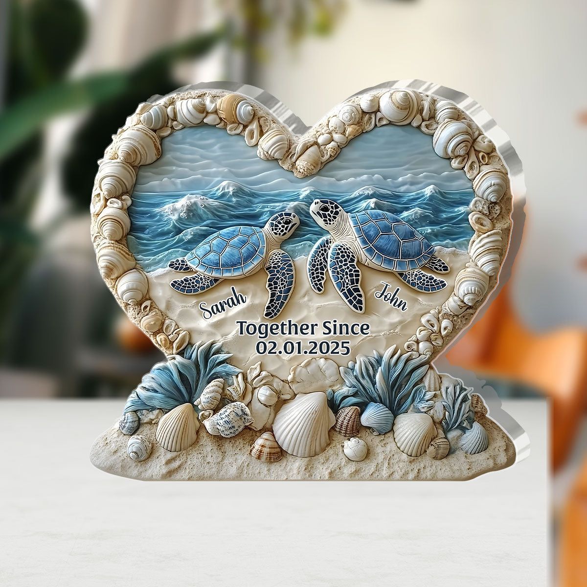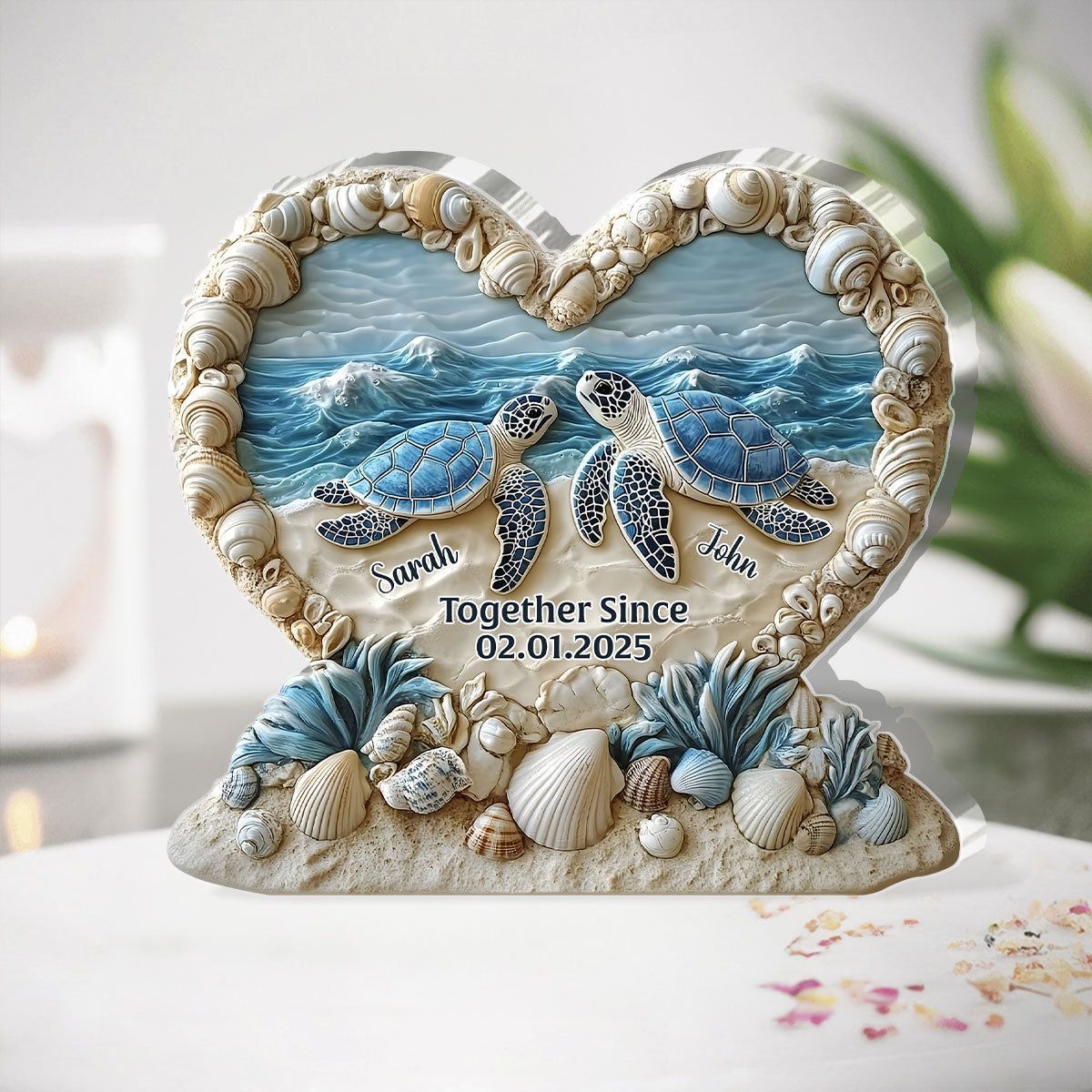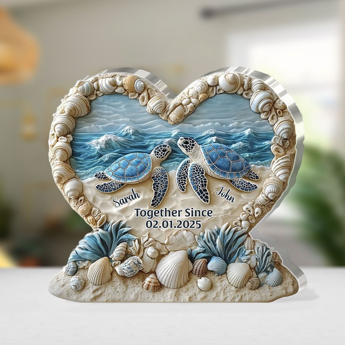 Personaliseret Havskildpadde Hjerte | Akryl Plaque Sammen siden dato Strand Kærlighed Keepsake