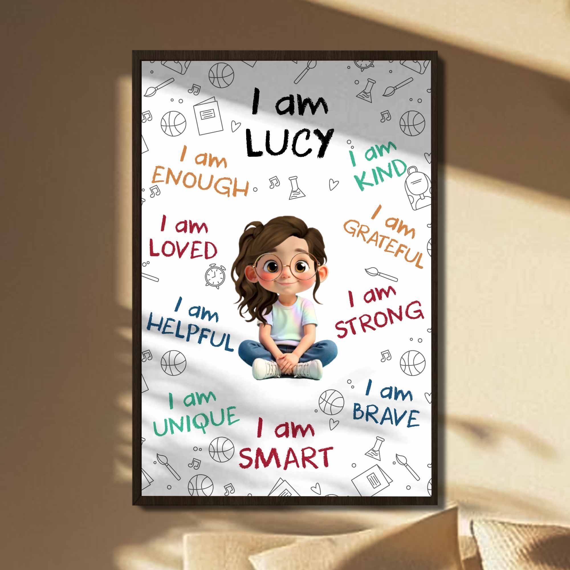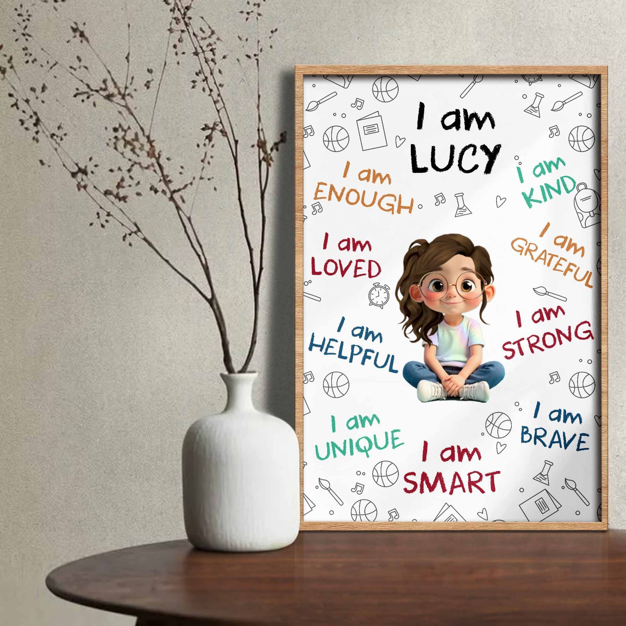 1 x "Jeg er nok, elsket, hjælpsom, unik, klog" - Personlig, brugerdefineret lodret plakat