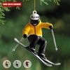 Skiløb sjov personlig navneformet ornament, gaveidé til skientusiaster